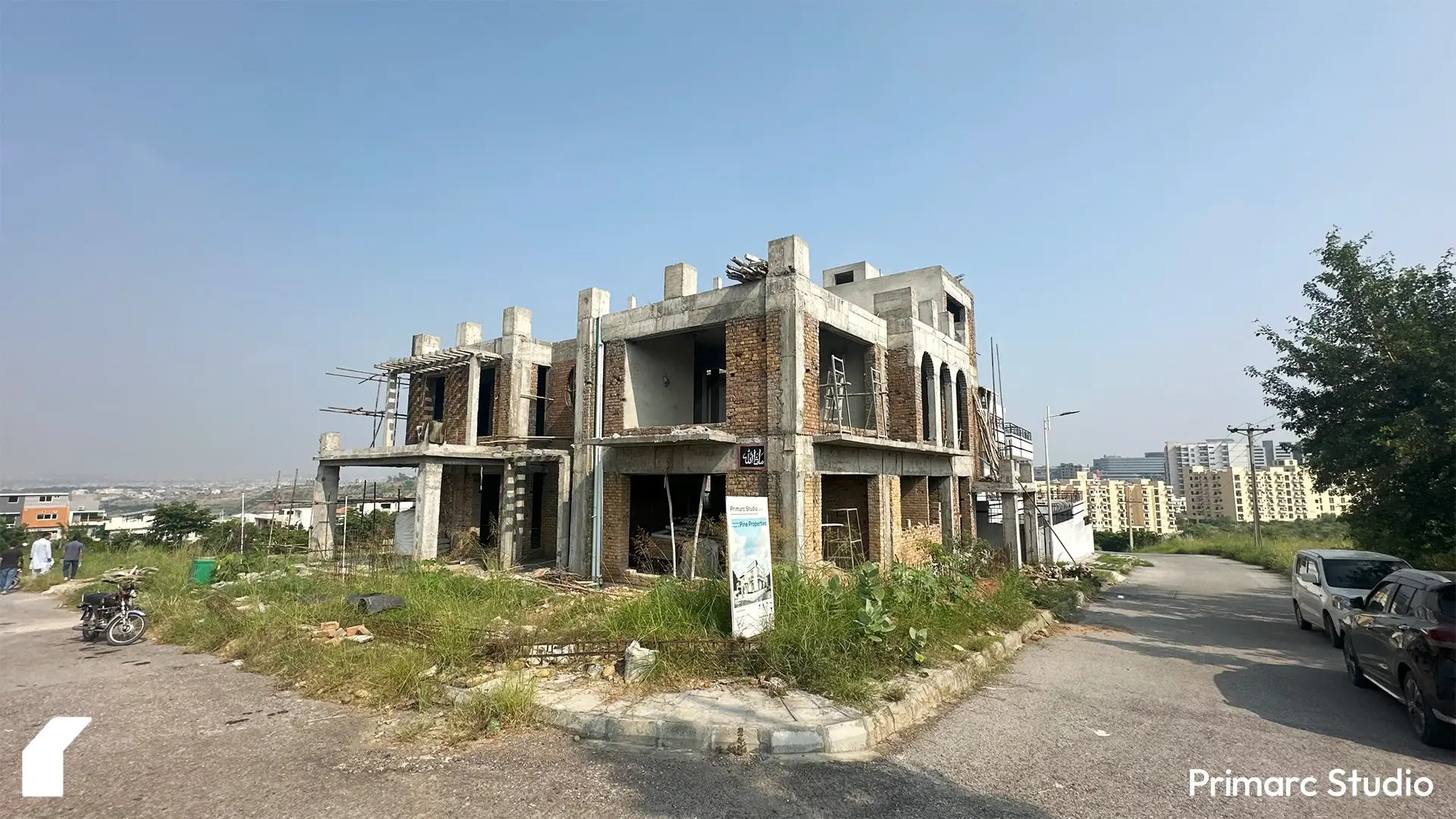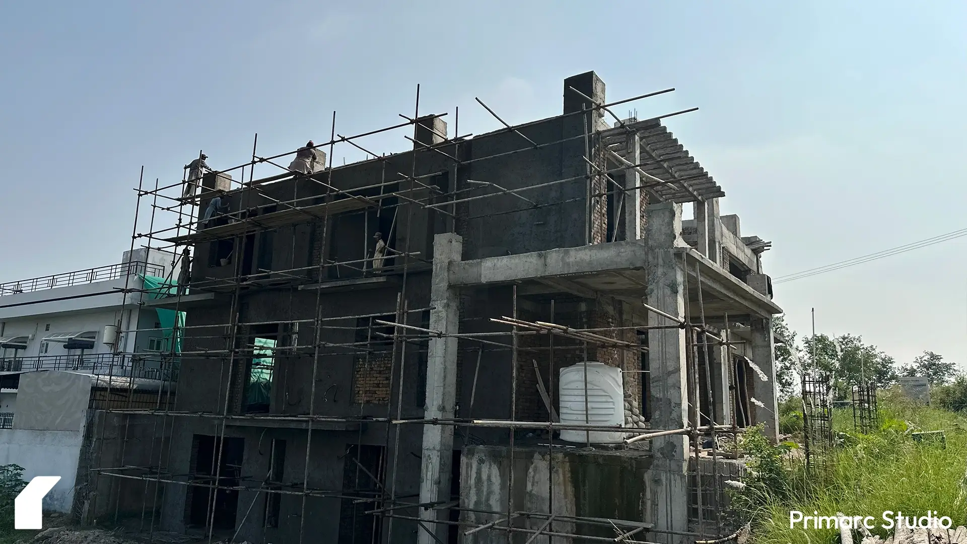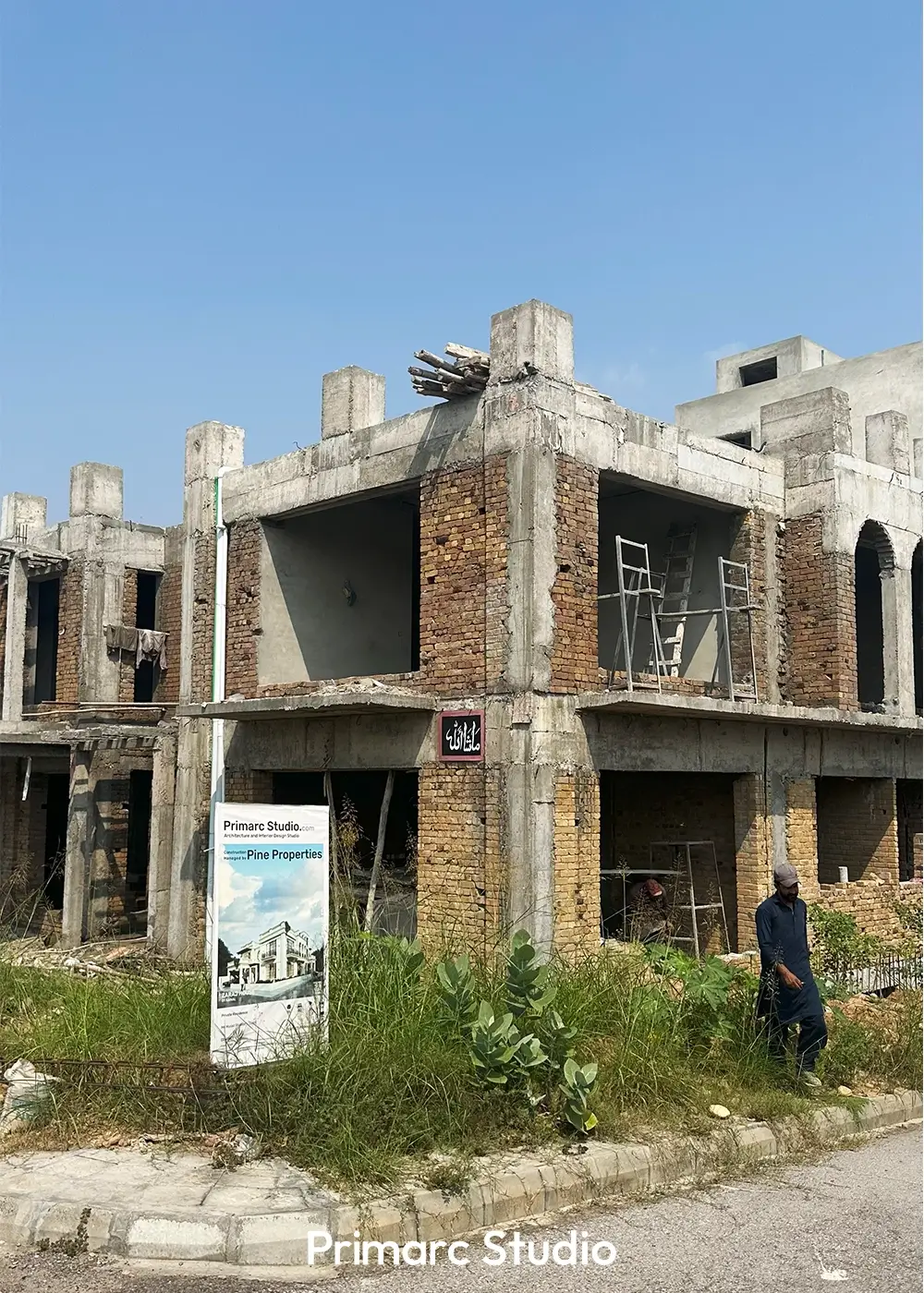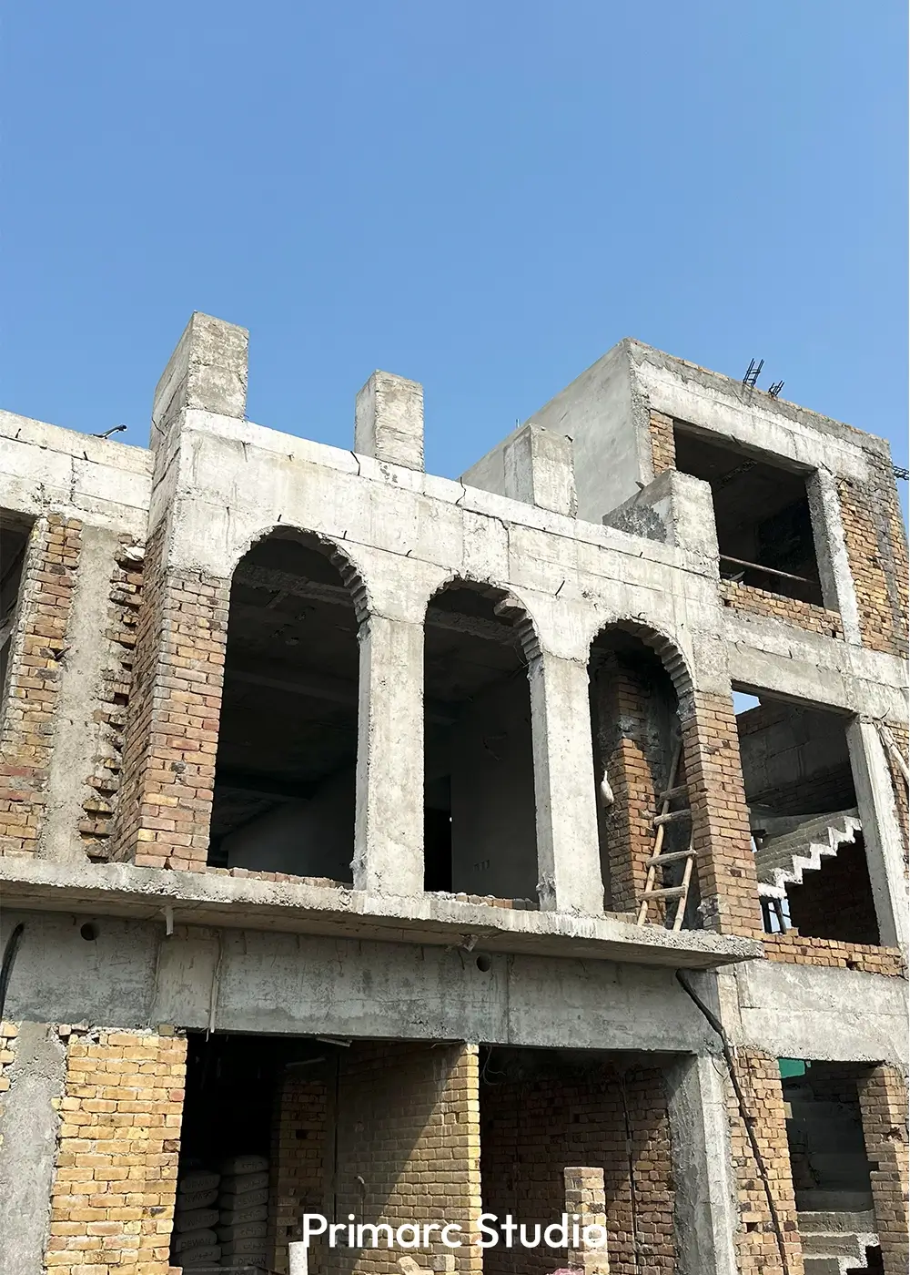 We are excited to share the latest construction progress of the Murad Shabbir Residence which is a 1 kanal house designed in Classical design in Zaraj Housing Society, Islamabad. The structure is steadily taking shape, with the main framework, arches, and pergola elements now visible.