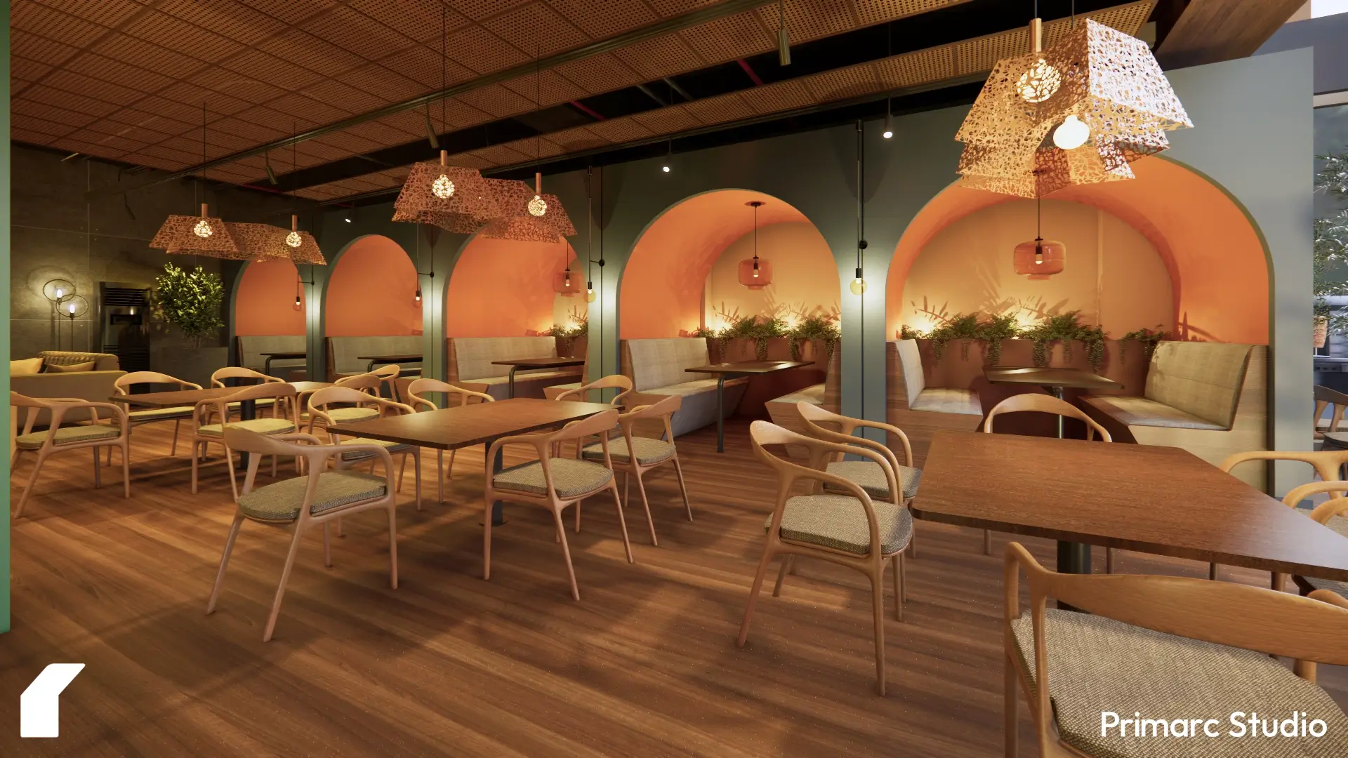 At Primarc Studio, our approach to restaurant interior design is rooted in creating spaces that feel both memorable and grounded. For BDK Restaurant, the client approached us with an existing commercial shell, a blank volume waiting to be reimagined into a warm, engaging dining experience. While the façade was initially outside our scope, we designed it nonetheless to ensure that the building’s exterior reflected the essence of what was happening inside.