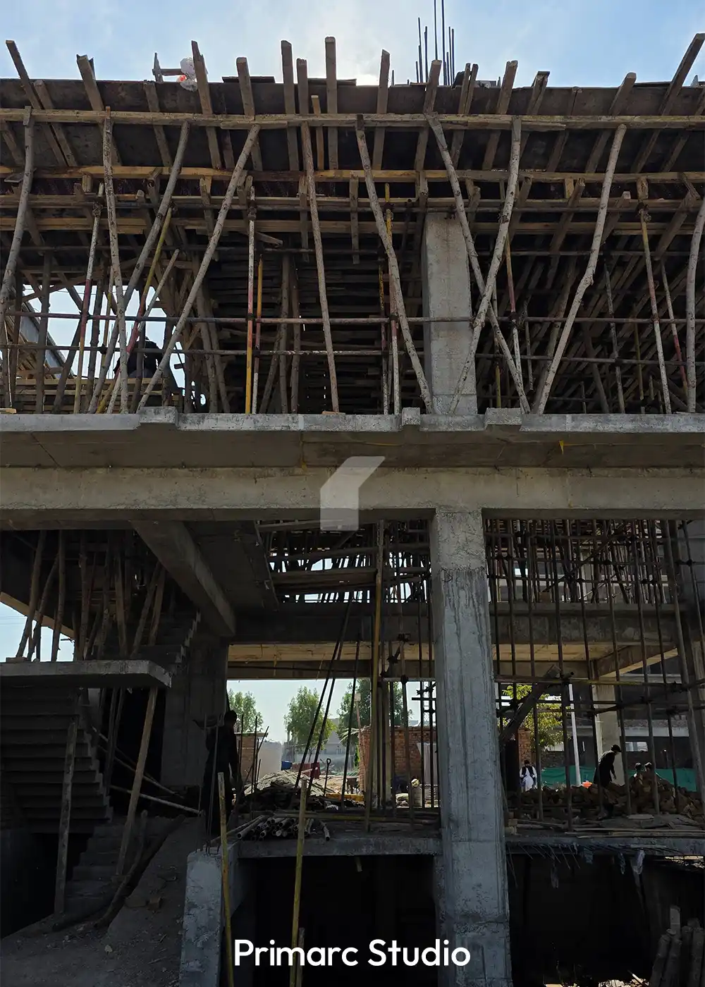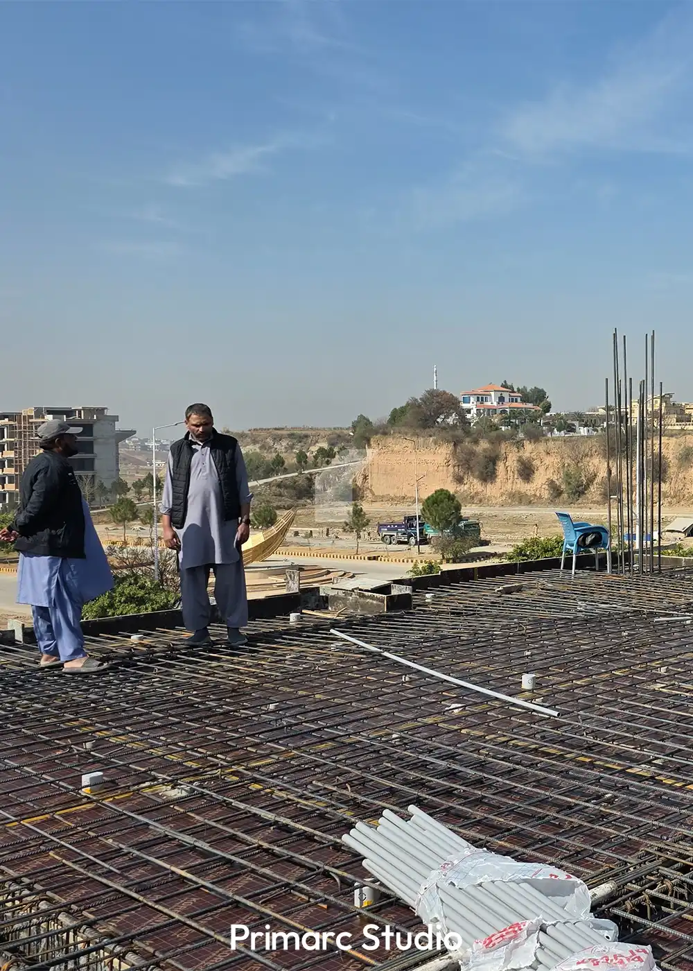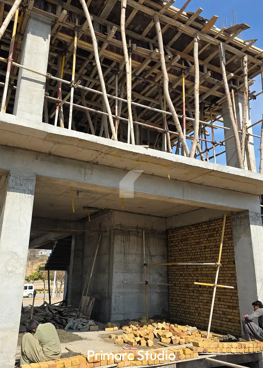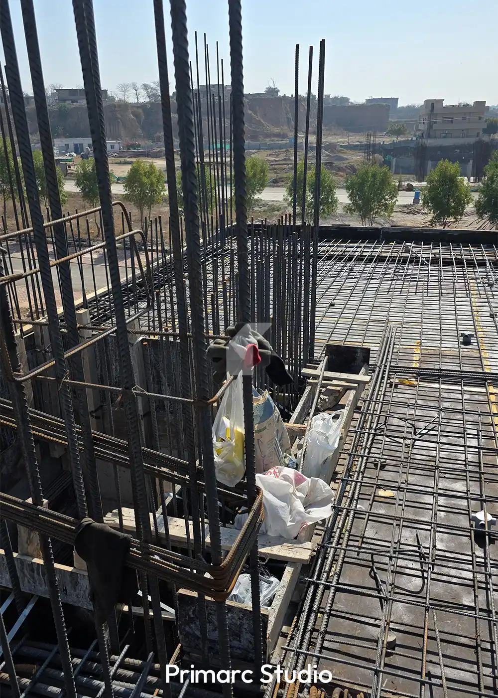Work is moving at a steady pace on Noman Plaza, a premium commercial project in DHA Phase 5, Islamabad. Our team is currently focused on the critical structural phase, including the preparation of the roof slab and the intricate assembly of steel reinforcement. The latest site updates show the precision involved in the shuttering and formwork for the upper floors, ensuring the building’s structural integrity meets the high standards of Primarc Studio.
