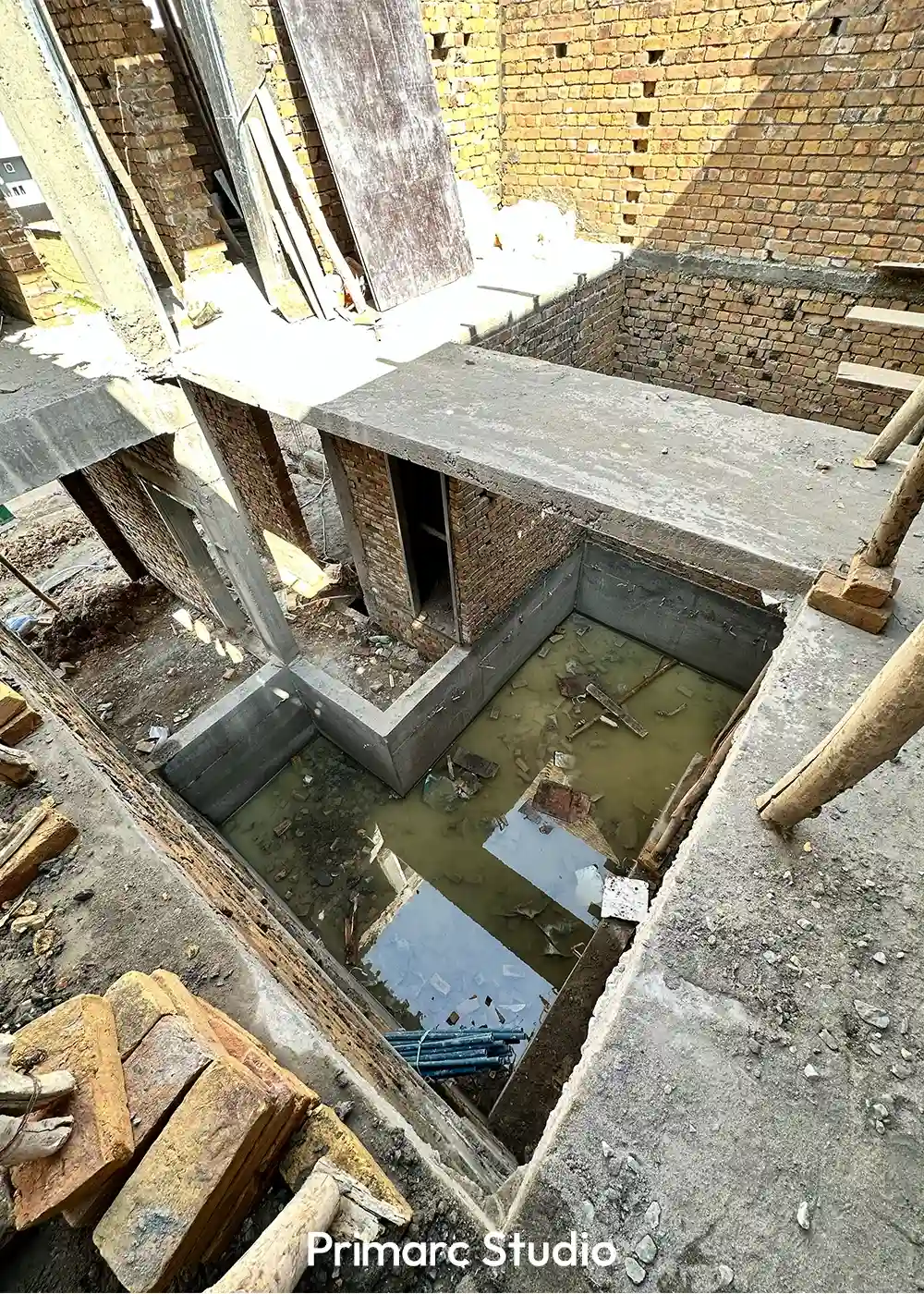 A key focus of this visit was the preparation for the biophilic facade at the Farman House. We reviewed the south-facing masonry to ensure it is ready for the upcoming limestone cladding and fluted panels. The “living shield” concept depends on the structural accuracy of the custom metal screen attachment points, which were verified during this inspection. Ensuring these thermal buffers are correctly positioned now will significantly reduce the building’s energy load once occupied.